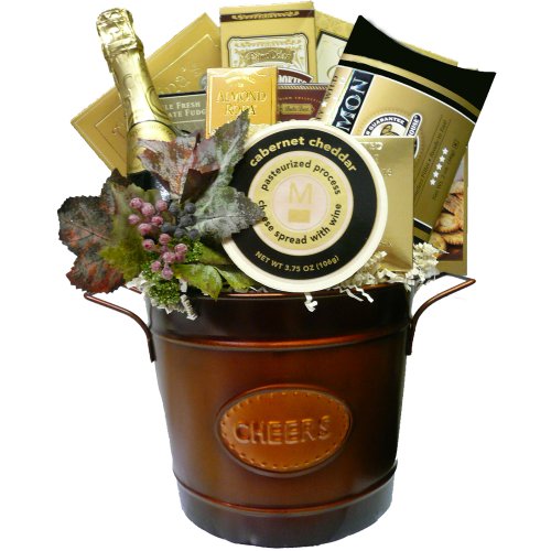 This elegant gift is designed to express your sentiments in gourmet style. It’s the perfect way to say "thank you," "congratulations," "Happy Birthday" or "job well done" in gourmet style. After the goodies are gone, the richly-colored copper CHEERS bucket can be used as a decorative accent to your home, or to chill your bottle of choice for future romantic dinners and celebrations for years to come. Each basket is hand crafted with attention to detail and tied with a bow for presentation. To include a personalized gift message or to notify your recipient who purchased this thoughtful gift, you must select GIFT during checkout, allowing you to input your own personalized best wishes.