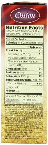 Mary's Gone Crackers, Onion, 6.5-Ounce Boxes (Pack of 12) Features