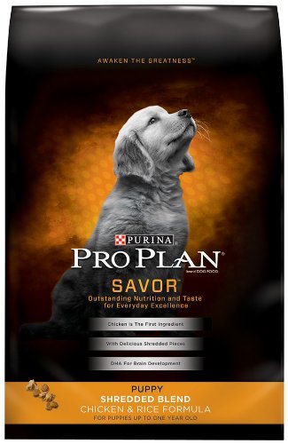 Pro Plan Savor Shredded Blend Chicken & Rice Puppy FoodIt's the little things you do for your puppy without thinking twice. It's setting aside time just for him, because he gives you so much every day. It's giving him food made with nutritional extras for high quality nutrition, and carefully chosen ingredients for great taste, too. As a high quality source of protein, real chicken helps support total body health including a healthy heart, muscle mass, strong immune system and bone structure. OptiStart with easy to digest natural milk proteins helps to support the natural protection your puppy once received from his mother's milk. Formulated with fish oil which contains DHA to help brain and vision development.