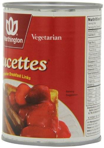 Worthington Saucettes are completely meat-free sausage-like links that come precooked, in a can for easy serving. Made from vegetable protein, Saucettes offer protein and flavor for your breakfast without the unhealthy trans fat or cholesterol typically found in meat-based sausage.